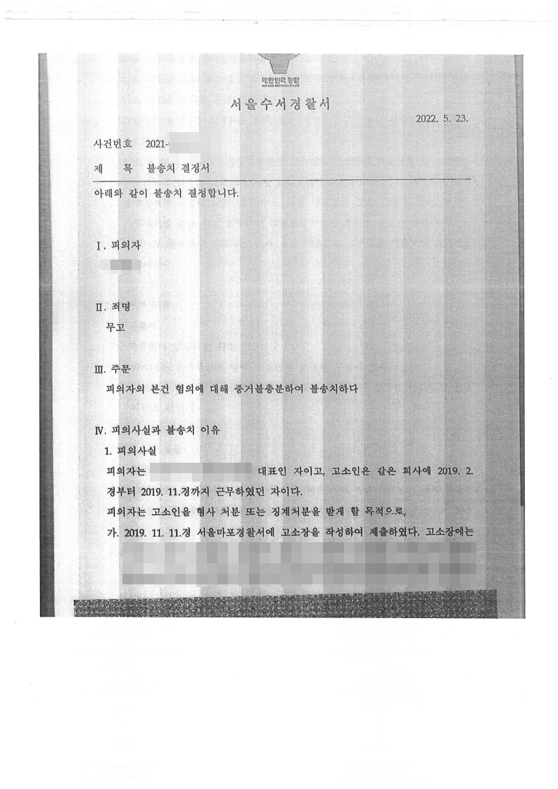 회사를 운영하고 있는 의뢰인은 퇴사한 직원을 상대로 부정경쟁방지법위반 등 혐의로 형사고소하였으나 불기소처분을 받게 되자, 퇴사한 직원이 의뢰인을 상대로 무고 혐의로 형사고소를 하였다.